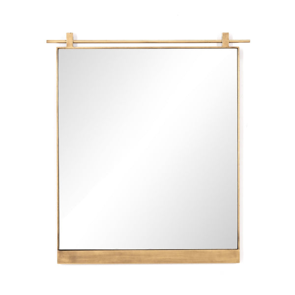 - A slim antique brass/iron bar suspends a simple square for a streamlined look with modern-minimalist allure.