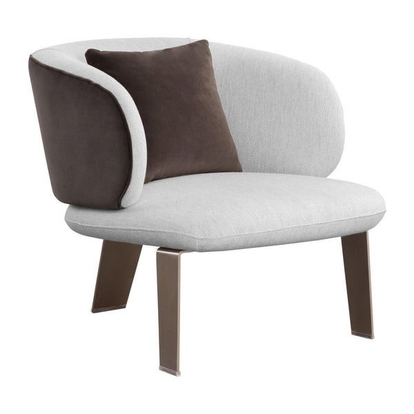 - Full of artistic appeal, this contemporary lounge chair features a curved backrest with an interior upholstered in san remo winter cloud fabric and the back exterior in meg ash fabric